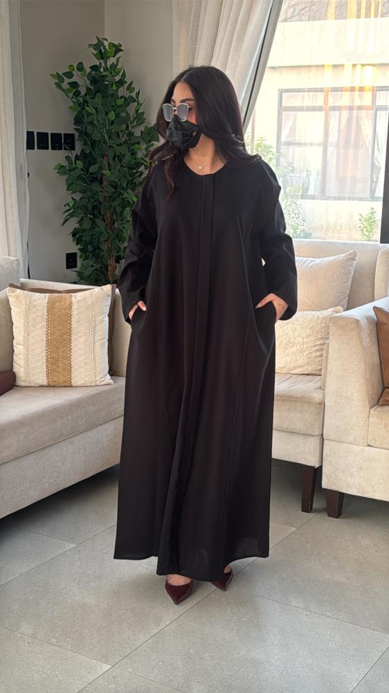سرّ الجمال في هذه العباية يكمن في تدخيلة القيطان الممتدة بتناغم فني من الكم إلى الكتف، ومنها إلى منتصف العباية حتى الأسفل – تفاصيل دقيقة تبرز الذوق الرفيع وتضفي لمسة من الانسيابية الفاخرة.