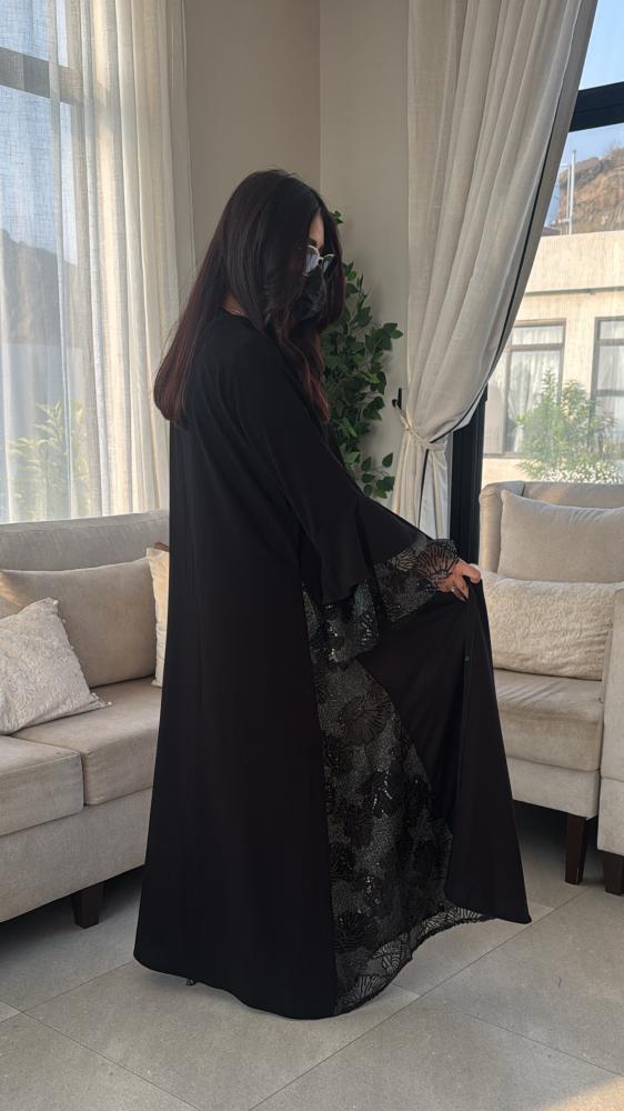 عباية مصممة للمرأة التي تعشق الأناقة الناعمة والفخامة الراقية، تجمع بين القصّة الانسيابية والتطريزات اللامعة لتمنحك حضوراً لا يُنسى.