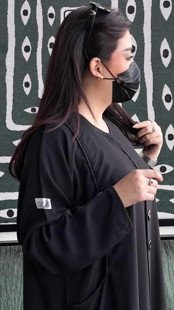 تتميز عباية ندى بقفلة أمامية أنيقة بزرارين علويين، يتوسطهم ديكور ثلاث أزرار ناعمة مدمجة في الكرفته الأمامية، لتمنحكِ لمسة أنثوية ناعمة وراقية.